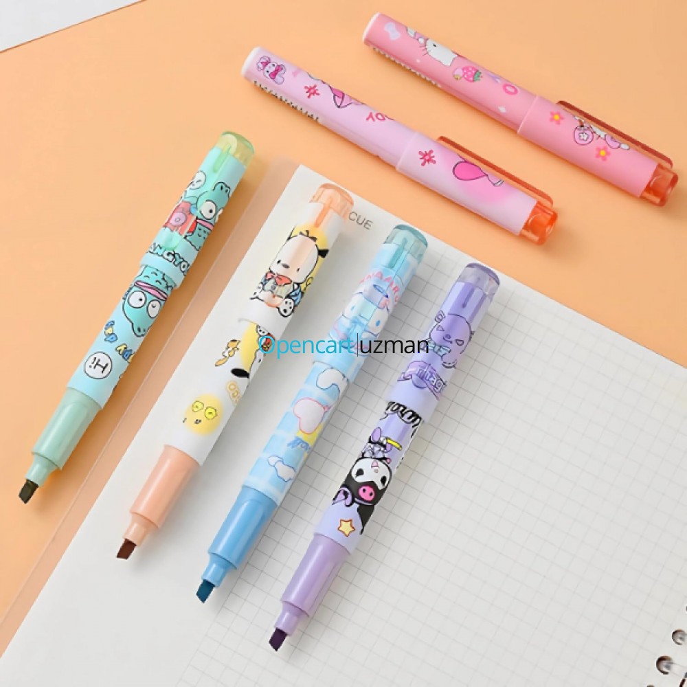 6'lı Fosforlu Kalem Seti, Hello Kitty, Kuromi ve arkadaşlarının şirin tasarımıyla süslenmiştir. Renkli fosforlu uçları sayesinde yazıların parlak ve dikkat çekici olmasını sağlar. Her bir kalem, farklı renklerde olup, karakterli desenleriyle eğlenceli bir görsellik sunar. Çeşitli renk seçenekleriyle yazı yazarken renkli ve eğlenceli bir deneyim yaşatır. Set, özellikle çocuklar ve Hello Kitty ile Kuromi hayranları için idealdir. Kalemlerin tasarımları, ürünün şıklığını ve kullanışlılığını artırmaktadır.