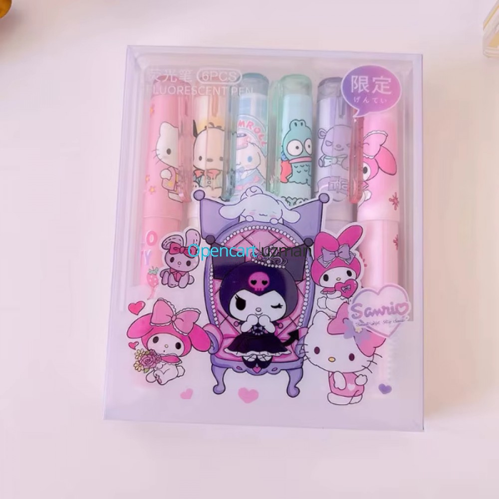 1 Adet 6'lı Fosforlu Kalem Seti - Hello Kitty Kuromi ve Arkadaşları