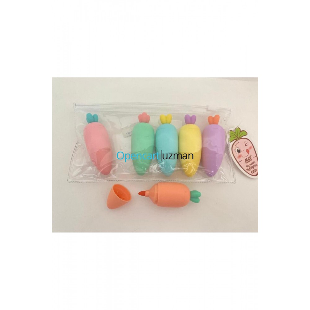 HAVUÇ TASARIMLI FOSFORLU KALEM SETİPaket içeriğinde 5 adet havuç tasarımlı fosforlu kalem mevcuttur.Kalemlerin hepsi fosforlu yazım için ve işaretleme yapmak için uygundur.Sıradışı tasarımı ile çocukların dikkatini çektiği kadar yetişkinlerin de oldukça dikkatini çekecek bir ürün.Paket İçeriği1 set 5 adet havuç tasarımlı fosforlu kalem seti