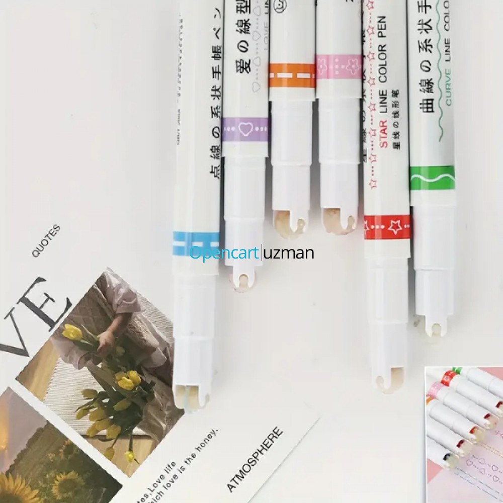 Şekilli Desen Baskılı 6'lı Kalem Seti, kağıt üzerine düz veya motifli renkli desenler çekerek süsleme amacıyla kullanılan pratik kırtasiye ürünleridir. Desenli bant ucu sayesinde yıldız, kalp, çiçek, çizgi gibi farklı motiflerde iz bırakır. Bu kalemler, genellikle çıkartma gibi görünse de bant mekanizmasıyla desen basar. Dekoratif süslemeler, el işi projeleri, günlük planlayıcılar, ajanda, defter ve mektup süslemeleri için idealdir. Kullanımı son derece kolaydır; kalem gibi tutularak yüzeye bastırılır ve sürülür. Farklı renk ve desen seçenekleriyle gelir. Çocuklar, öğrenciler ve hobi severler tarafından sıkça tercih edilen bu kalemler, yazı yazmadan ziyade tasarım ve süsleme amacı taşır. Hem eğlenceli hem de estetik katkı sağlar.