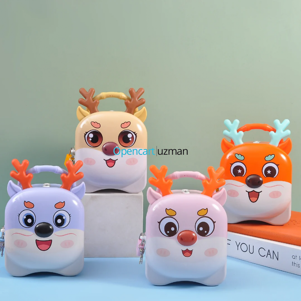 SEVİMLİ GEYİK KUMBARA “Çocuklarınızın Eğlenceli Tasarruf Arkadaşı!”Sevimli Geyik Kumbara, eşsiz tasarımı ve şık görünümü ile doğum günleri için en iyi hediye seçeneğidir. PP plastik malzemeden üretilmiştir ve kilitli anahtarlı bir mekanizmaya sahiptir. Çocuklarınızın eğlenceli bir şekilde para biriktirmelerine yardımcı olur. Bu kumbara, blister paketleme ile sunulmaktadır.Paket İçeriği1 adet sevimli geyik kumbara