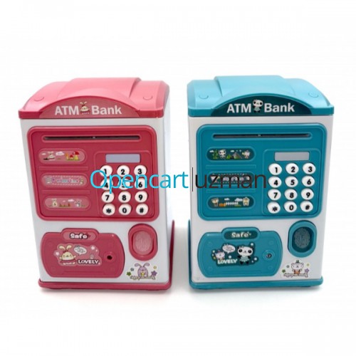Sevimli tasarımlı şifreli ATM kumbara, çocukların para biriktirmeyi eğlenceli bir şekilde öğrenmesine yardımcı olur. 4 haneli şifre sistemi ve parmak izi okutmalı güvenlik özelliği sayesinde gerçekçi bir ATM deneyimi sunar. Otomatik para çekme özelliği ile kâğıt paraları içine çeker ve bozuk paralar için de giriş yuvası bulunur. 3 adet kalem pil ile çalışır. Görseldeki pembe ve mavi renklerden karışık olarak gönderilmektedir. Çocuklara güvenli ve keyifli birikim alışkanlığı kazandırmak için ideal bir seçimdir.