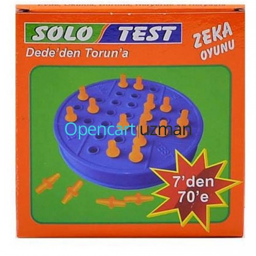 Solo Test, 7’den 70’e herkesin keyifle oynayabileceği klasik bir zeka oyunudur. Oyunda amaç, tahtadaki taşları belirli kurallara göre hareket ettirerek tek bir taş kalmasını sağlamaktır. Strateji geliştirme, mantık yürütme ve problem çözme becerilerini geliştirmeye yardımcı olur. Hafif ve taşınabilir yapısı sayesinde evde, okulda veya seyahatte kolayca oynanabilir. Hem çocuklar hem de yetişkinler için eğlenceli vakit geçirmenin yanı sıra zihinsel gelişime katkı sağlar.
