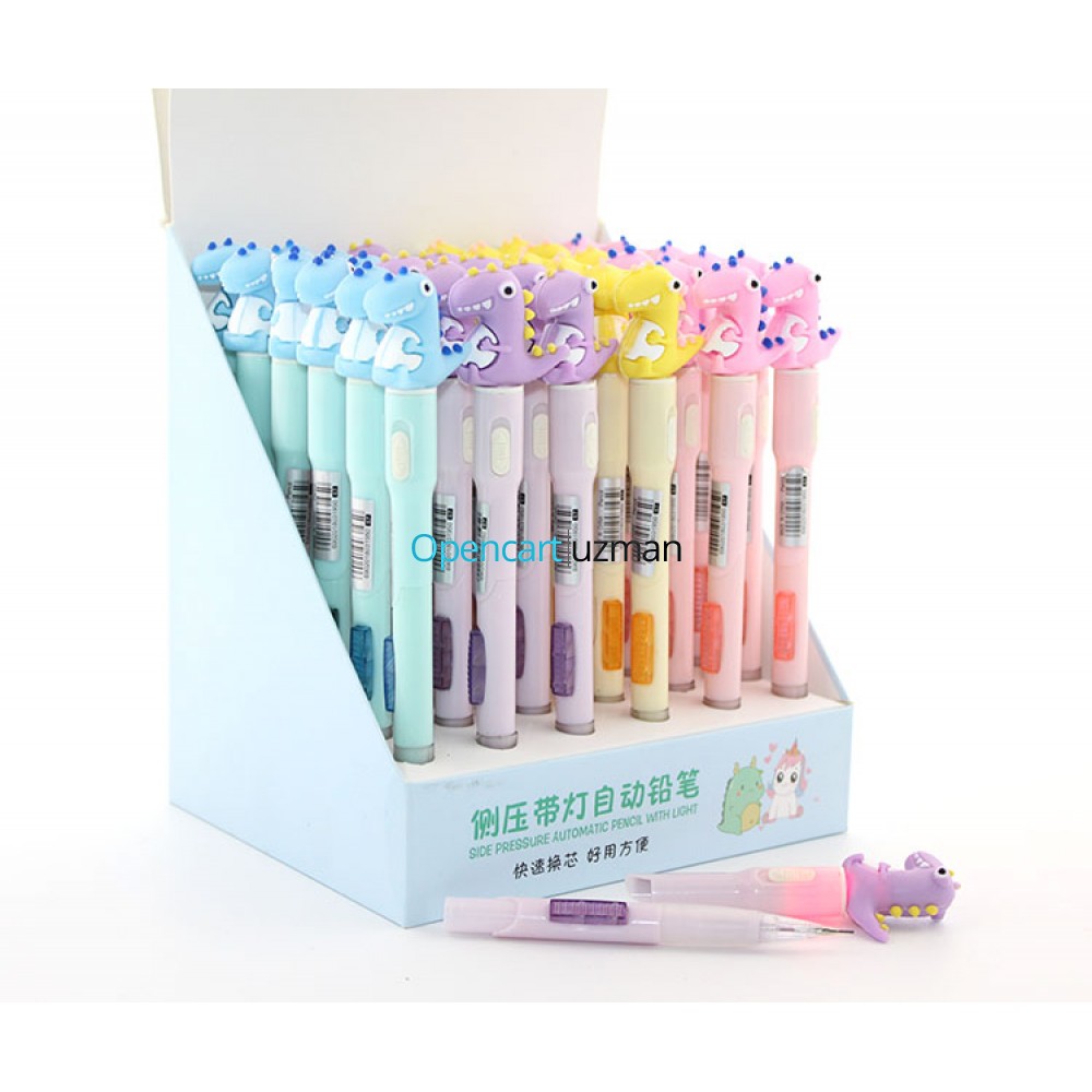 07 UÇLU LEDLİ DİNAZOR TASARIMLI KALEMÜrün Özellikleri17 cm boyutlarındaki 07 uçlu LED’li dinazor tasarımlı kalem, hem işlevsel hem de eğlenceli bir yazma aracıdır. Dinazor figürlü tasarımı ve LED ışığıyla çocuklar için özel olarak tasarlanmıştır. Yazarken LED ışıkları yanar ve renkli bir deneyim sunar. Kalem, okuma yazma işlemlerini daha eğlenceli hale getirirken, aynı zamanda dinazor figürleriyle dekoratif bir görünüm sağlar.Paket İçeriği1 adet LED'li dinazor tasarımlı kalem