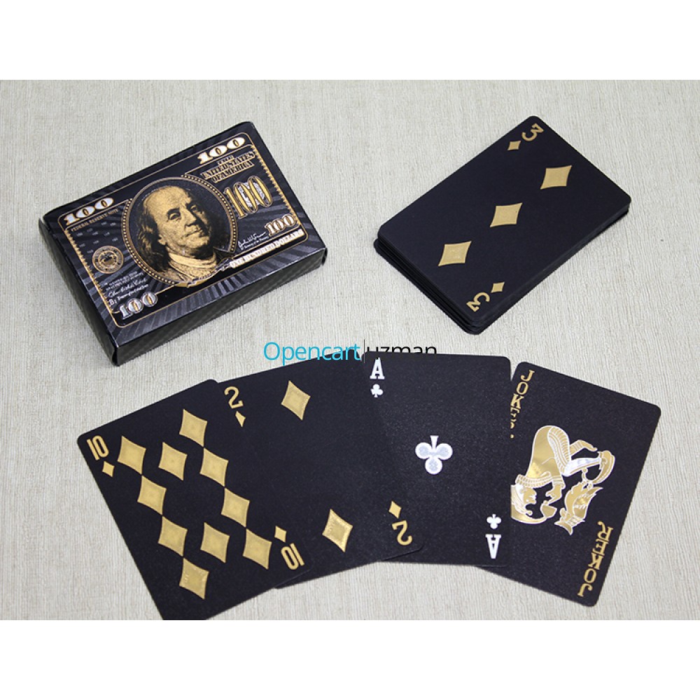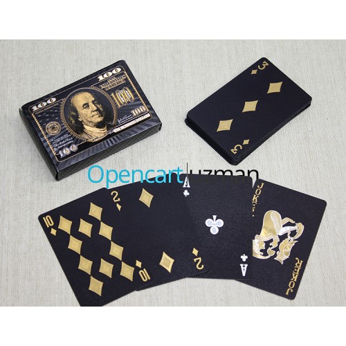 1 adet Altın Dolar Tasarımlı Siyah İskambil Oyun Kartı Destesi