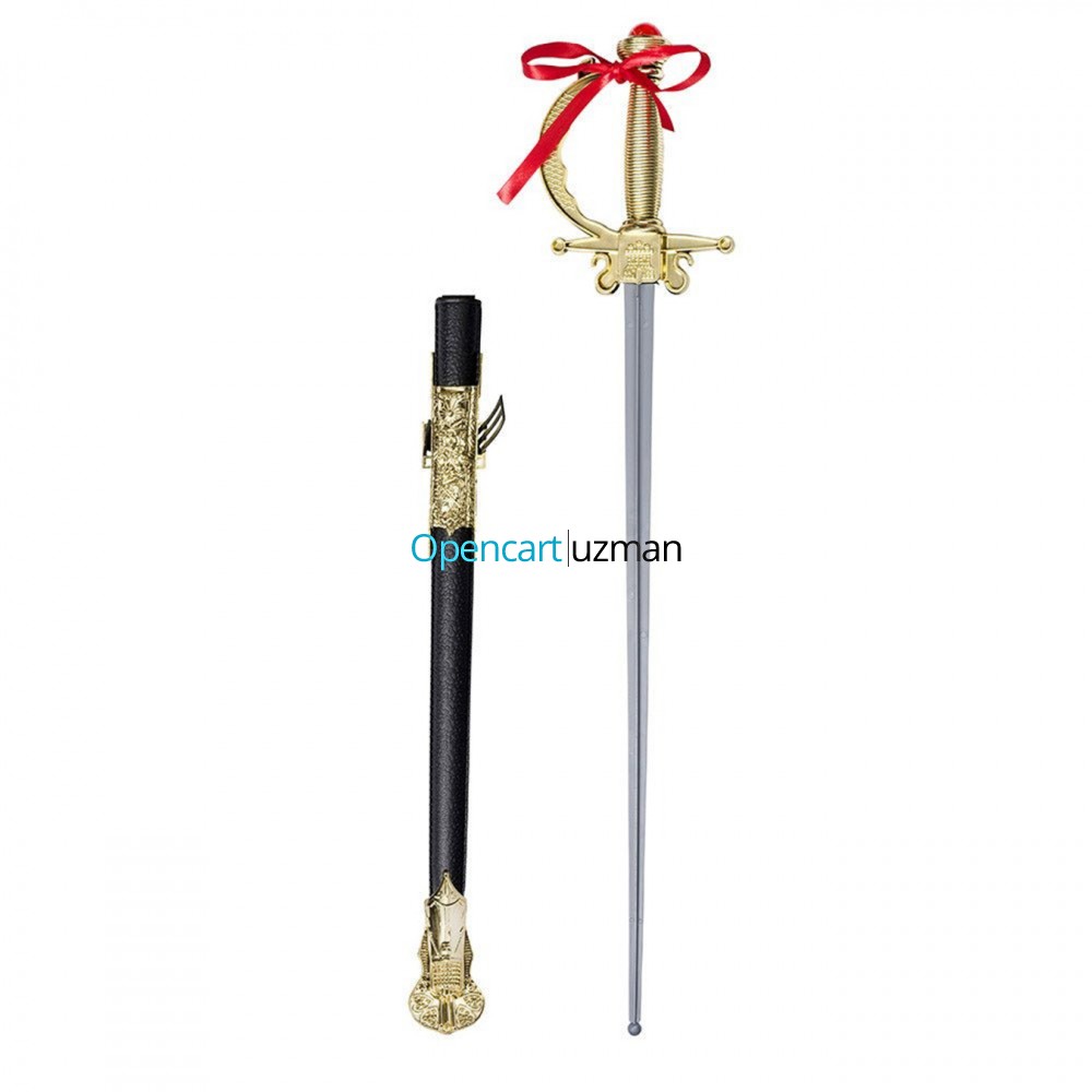 Çocukların eğlenceli ve hayal gücünü geliştiren oyunlarında kullanabileceği bu oyuncak şövalye kılıcı, 68 cm uzunluğundadır. Zararsız plastik malzemeden üretilmiş olup çocuklar için güvenli bir kullanım sunar. Altın renkli detaylara sahip kabzası ve kırmızı kurdele süslemesi ile gerçekçi ve dikkat çekici bir görünüm sağlar. Kılıç, kendi kınıyla birlikte gelmektedir ve taşıma kolaylığı sağlar. Kostüm tamamlayıcı aksesuar olarak doğum günü partilerinde, temalı oyunlarda veya tiyatro etkinliklerinde kullanılabilir.