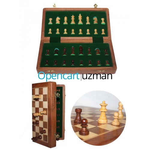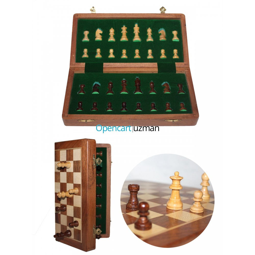 Mıknatıs Taşlı Ahşap Katlanabilir Kutulu Satranç Oyunu 30 Cm