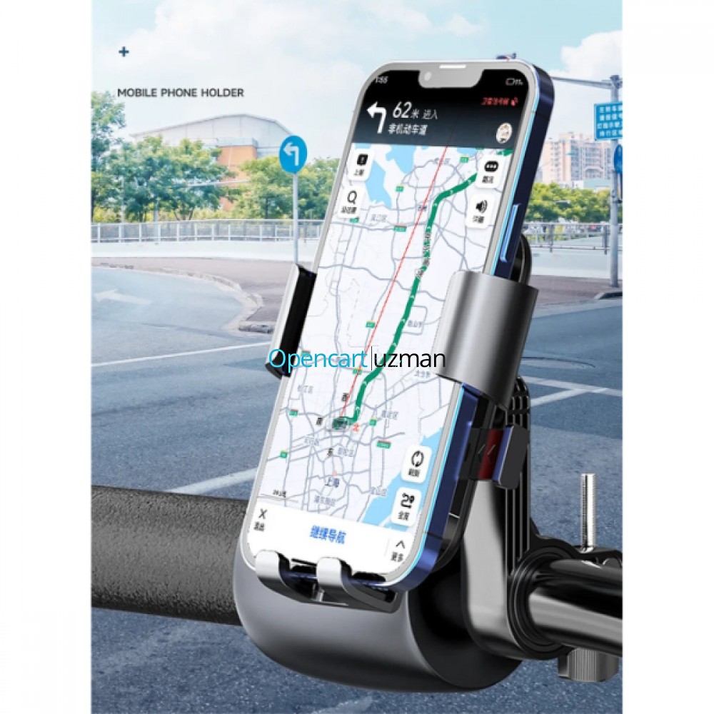 360° gidon bisiklet motosiklet telefon tutucu, ayarlanabilir sıkıştırma sistemi sayesinde farklı çaplara sahip gidonlara kolayca monte edilebilir. Yaylı yapıya sahip yan ve alt sabitleyici kolları ile telefonu güvenle kavrar, sarsıntılı yollarda bile düşmesini engeller. Cihazı hem yatay hem de dikey pozisyonda kullanma imkanı sunar. Telefonun çizilmesini ve kaymasını önleyen silikon destek pedleriyle donatılmıştır. Sert plastikten üretilmiş olup dayanıklı ve uzun ömürlü bir yapıya sahiptir. Modern ve ergonomik tasarımı sayesinde bisiklet sürüşlerinde telefonu güvenle taşımanızı, motosiklet yolculuklarında navigasyonu kolayca takip etmenizi sağlar. Ayrıca elektrikli scooter ve scooterlar için de uyumludur.