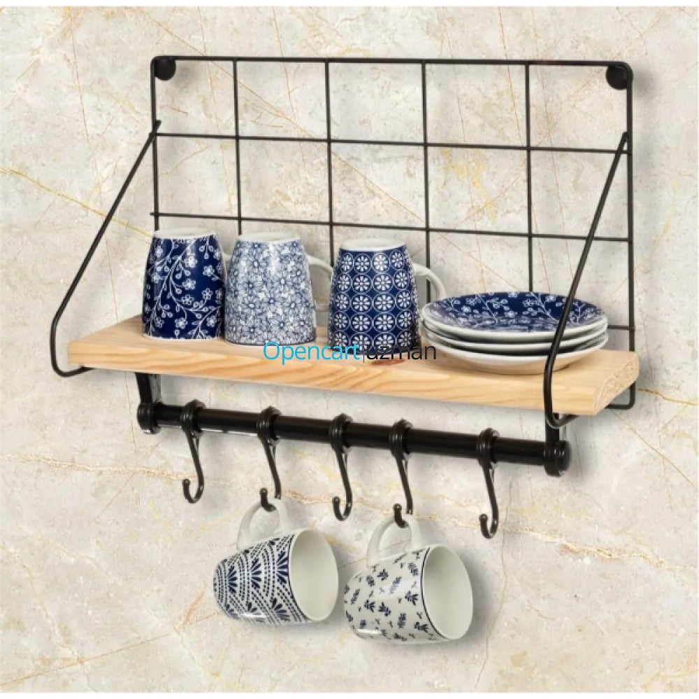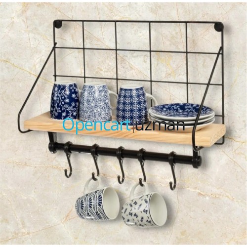Metal askılıklı kahve köşesi rafı, mutfağınızda düzeni ve şıklığı bir arada sunar. Üst kısmı ahşap raf, alt kısmı ise metal boru üzerine yerleştirilmiş 6 adet sağlam askılıktan oluşur. Duvara monte edilebilen bu dekoratif düzenleyici, kahve fincanlarınızı, küçük tabakları, kavanozları ve mutfak aksesuarlarını estetik bir biçimde sergilemenize olanak tanır. Mutfak tezgâh üstü alanlarda veya kahve köşelerinde fonksiyonel ve modern bir görünüm yaratır. Metal iskeleti sayesinde uzun ömürlü kullanım sağlar. Az yer kaplayan tasarımı ile dar alanlarda bile pratik çözümler sunar.Ürün ölçüleri; uzunluk 42 cm, genişlik 13 cm, yükseklik 20 cm'dir.