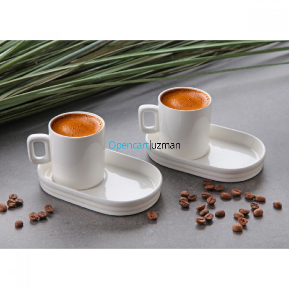 2'Lİ KAHVE SETİÜrün Özellikleri2'li Kahve Seti, şık ve modern tasarımıyla kahve keyfinizi tamamlayan harika bir seçenektir. Yüksek kaliteli porselenden üretilmiş fincanlar, özel tasarlanmış oval tabaklarla sunumlarınıza estetik bir dokunuş katar. Kahve fincanlarının ergonomik kulpları rahat bir tutuş sağlar ve tabakların geniş yapısı, yanında çikolata veya lokum gibi ikramlar için ekstra alan sunar. Günlük kullanım için ideal olan bu set, kahve severler için şık ve kullanışlı bir alternatif oluşturur.Paket İçeriği1 Adet 2'li Kahve Seti