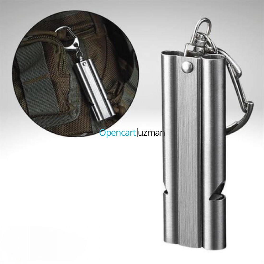 Yüksek ses gücü ve dayanıklı yapısıyla Alüminyum SOS Düdük Anahtarlık, doğa yürüyüşlerinden kamp aktivitelerine, spor etkinliklerinden acil durumlara kadar her ortamda güvenle kullanılabilir. Kompakt boyutu sayesinde anahtarlık olarak kolayca taşınabilir ve her an ulaşılabilir durumda olur. Paslanmaz çelik ve alüminyum alaşım malzeme yapısı, uzun ömürlü kullanım sunarken suya ve zorlu hava koşullarına karşı da dayanıklıdır.Acil durumlarda 150 desibele kadar ses çıkarabilen bu düdük, yardım çağrısı yapmak için mükemmeldir. Ayrıca evcil hayvan eğitimi, açık hava sporları, kamp, yürüyüş ve dağcılık gibi aktivitelerde de rahatlıkla kullanılabilir. Pürüzsüz yüzeyi ve ergonomik tasarımı sayesinde elde rahat tutuş sağlar ve kolay üfleme imkânı sunar.Hafif tasarımı (10 gram) sayesinde cebinizde, çantanızda veya kemerinizde fark edilmeden taşınabilir. Şık metalik rengiyle hem işlevsel hem de estetik bir görünüme sahiptir.Paket İçeriği1 adet Alüminyum SOS Düdük Anahtarlık