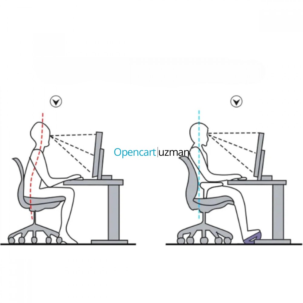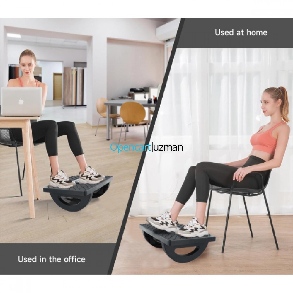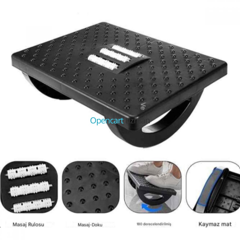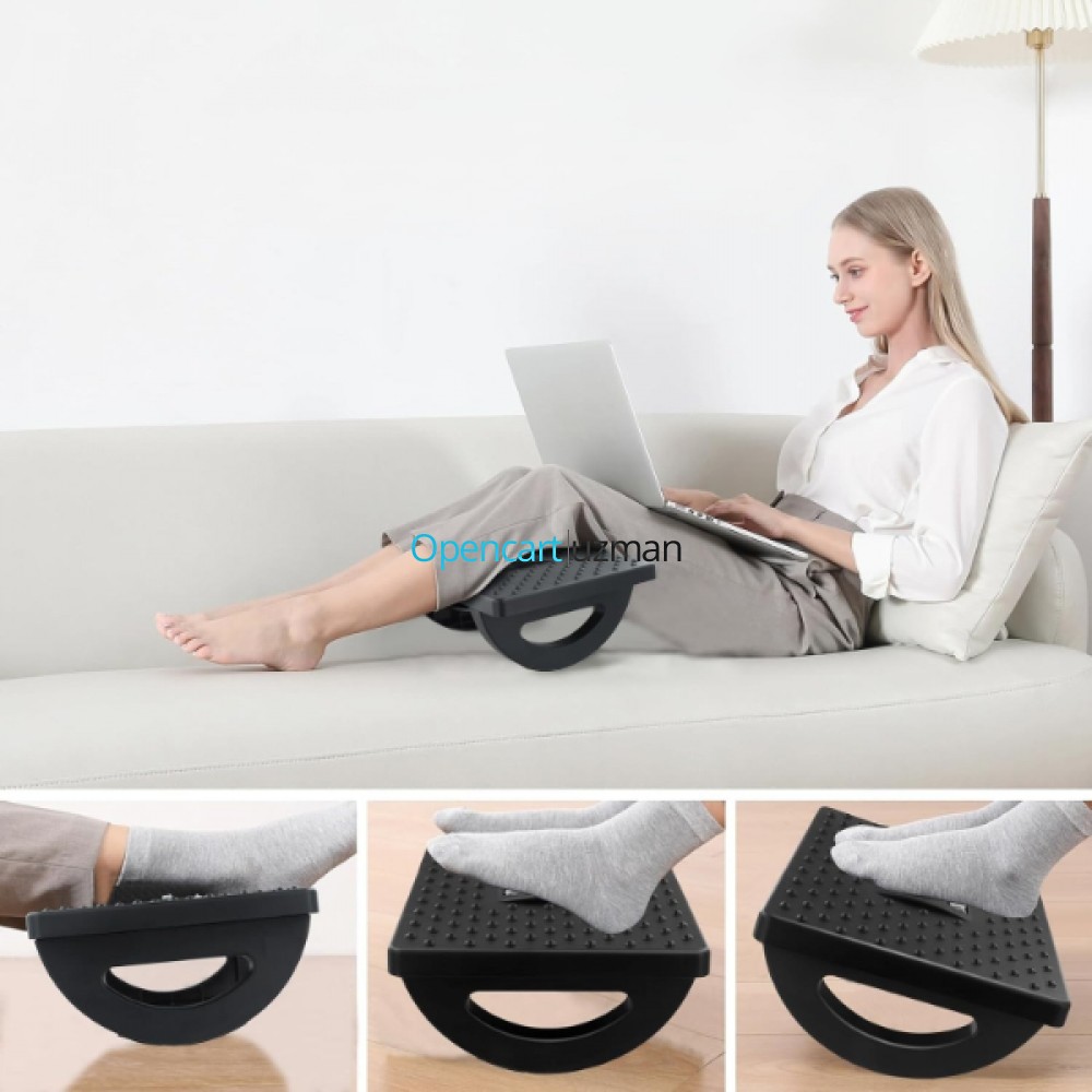 Ayak destek ve masaj aleti, masa başında çalışanlar için ergonomik rahatlık sunarken ayak sağlığını destekleyen özel bir tasarıma sahiptir. 34 cm x 25 cm ölçülerindeki bu ürün, 13 cm yüksekliğe sahiptir ve alt kısmında yer alan bombeli denge yapısı sayesinde ayak hareketlerini doğal şekilde destekler. Yüzeyindeki çıkıntılı masaj dokusu ve ortasında bulunan 3 adet masaj rulosu ile ayak tabanına baskı uygulayarak kan dolaşımını artırır. Kaymaz mat yüzeyi sayesinde güvenli bir kullanım sunar. 180 derece eğim kabiliyetiyle ayakların konumunu rahatça ayarlayabilir. Hem evde hem ofiste kullanılmak üzere ideal ve taşınabilir bir çözümdür.