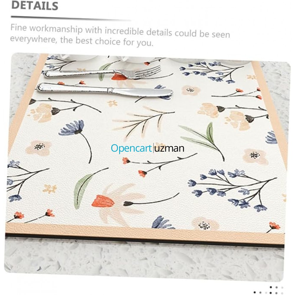 ÇİÇEKLİ KAYMAZ SERVİS MATIMasalarınıza Baharın Tazeliğini TaşıyınÇiçekli Servis Matı, 40x30 cm ölçülerinde ve sadece 0,25 cm inceliğinde, hem zarif hem de işlevsel bir dokunuş sunar. Kaymaz tabanıyla güvenli bir kullanım deneyimi sağlayan bu mat, yüksek kaliteli PVC, diatom sızıntısı, sünger ve kauçuk gibi dayanıklı malzemelerden üretilmiştir. Modern tasarımı, mutfak ve yemek masalarınıza stil katarak dekorasyonunuzu aydınlatır. İnce işçiliği sayesinde uzun süreli kullanım için sağlam ve dayanıklıdır.Kompakt boyutuyla saklaması ve temizlemesi son derece kolay olan bu servis altlığı, mutfağınızda pratik bir yardımcıdır. Zarif çiçek desenleriyle sofralarınıza baharın tazeliğini getirirken, her yemeği keyifli bir deneyime dönüştürür. Bu yıkanabilir ve yeniden kullanılabilir mat, hem şıklığı hem de işlevselliğiyle evinizin vazgeçilmezi olmaya aday. Bu özel servis matıyla, hem masalarınızı koruyun hem de dekorasyonunuza zarif bir dokunuş ekleyin.