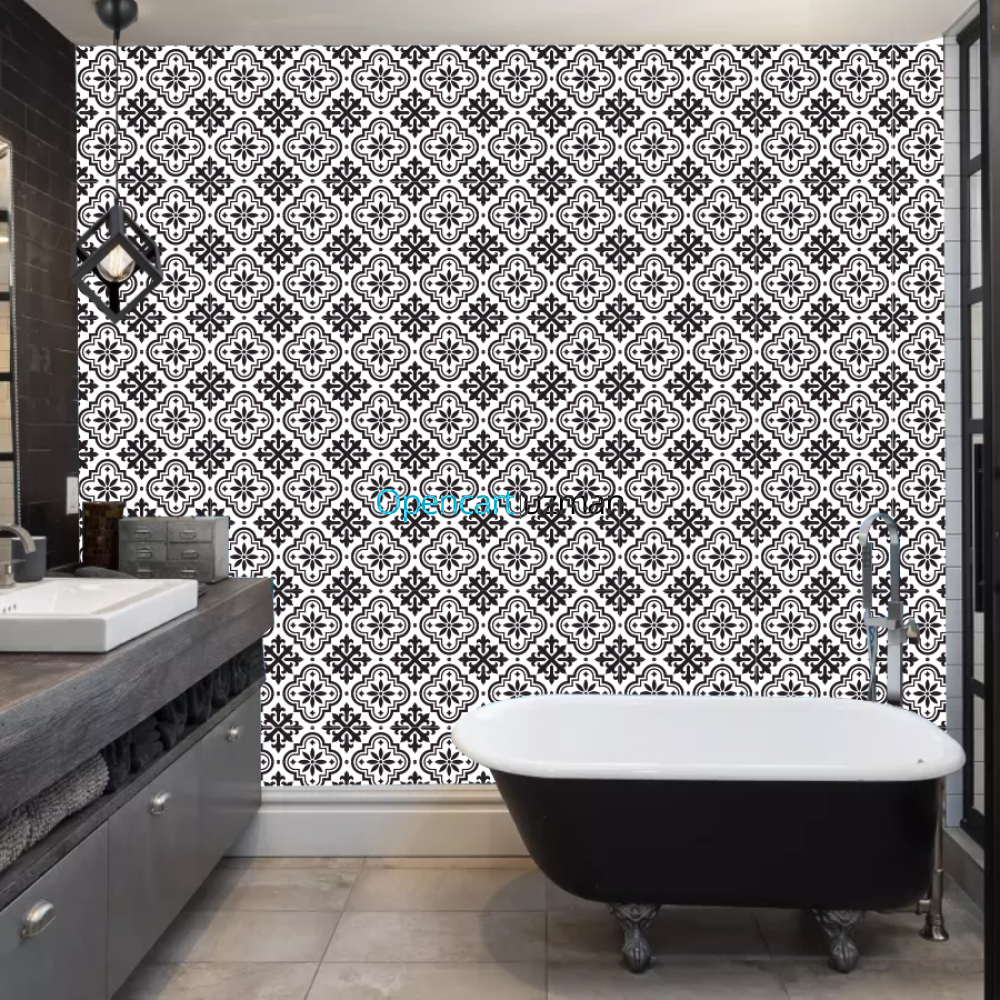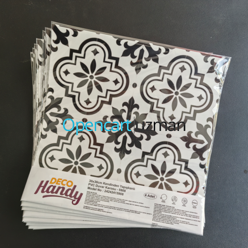 DecoHandy Pvc Duvar Karosu 30x30cm 4'lü Paket - Siyah Beyaz Çini Desen 0,36m2