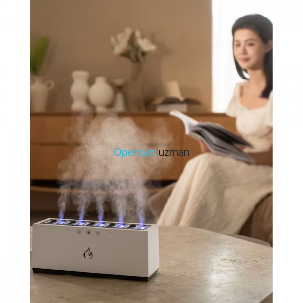 Dinamik tasarımıyla öne çıkan hava nemlendirici 900 ml su kapasitesi sayesinde uzun süreli kullanım imkânı sunar. Üzerinde bulunan 6 adet hava çıkışı güçlü buhar desteği sağlayarak bulunduğunuz ortamdaki nem dengesini korur. RGB ışık fonksiyonu sayesinde ortama modern bir görünüm katar ve müzik ile senkronize şekilde değişen ışıklarıyla eşsiz bir ambiyans oluşturur. Aromatik yağlarla da kullanılabilen cihaz hem şık bir dekoratif ürün hem de sağlıklı bir yaşam alanı için pratik bir çözümdür. Sessiz çalışmasıyla gece ve gündüz her ortamda rahatça kullanılabilir.