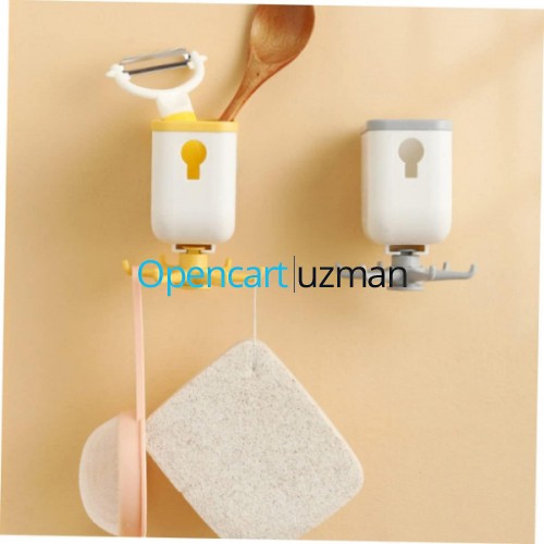 Döner Askılı Organizer, kullanışlı yapısıyla her alanda işinizi kolaylaştırır. Üst kısmında sünger, tel ya da küçük temizlik ürünleri gibi eşyaları koymak için uygun bir hazne bulunur. Alt kısmında ise 360° dönebilen askı kancaları yer alır. Döner mekanizma, 4 adet askı ile bez, fırça, eldiven, kepçe gibi eşyaların düzenli bir şekilde asılmasını sağlar.