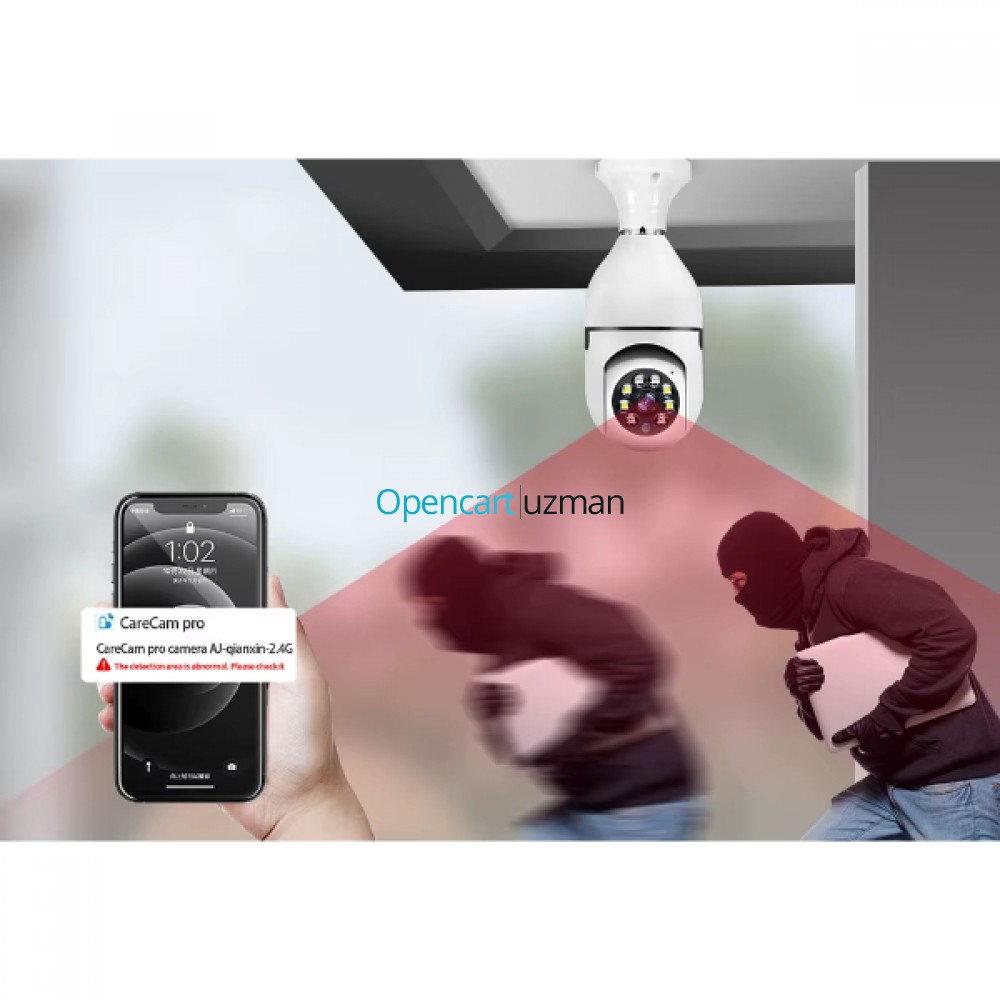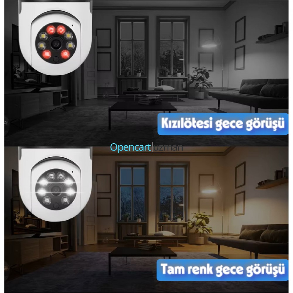 Duy girişli kablosuz ampul kamera, güvenliği pratik ve estetik bir şekilde sağlamanıza yardımcı olur. Standart E27 duy soketine takılarak çalışır ve ek adaptöre gerek duymaz. 355° yatay ve 90° dikey hareket desteği sayesinde geniş açılı görüntüleme sunar. Yüksek çözünürlüklü HD kamera, akıllı tam renk teknolojisiyle hem gündüz hem de gece net görüntüler sağlar.Hareket algılama ve insan takibi özellikleri ile şüpheli aktivitelerde anında uyarı gönderir. Çift yönlü ses desteği sayesinde hem ses kaydı alabilir hem de sesli iletişim kurabilirsiniz. AP hotspot ve Wi-Fi bağlantı desteği sayesinde telefondan kolayca kontrol edilebilir. TF kart ve bulut depolama seçenekleriyle kayıtlar güvenli bir şekilde saklanabilir. Çoklu cihaz desteği ile aynı anda birden fazla kullanıcı görüntüye erişebilir.