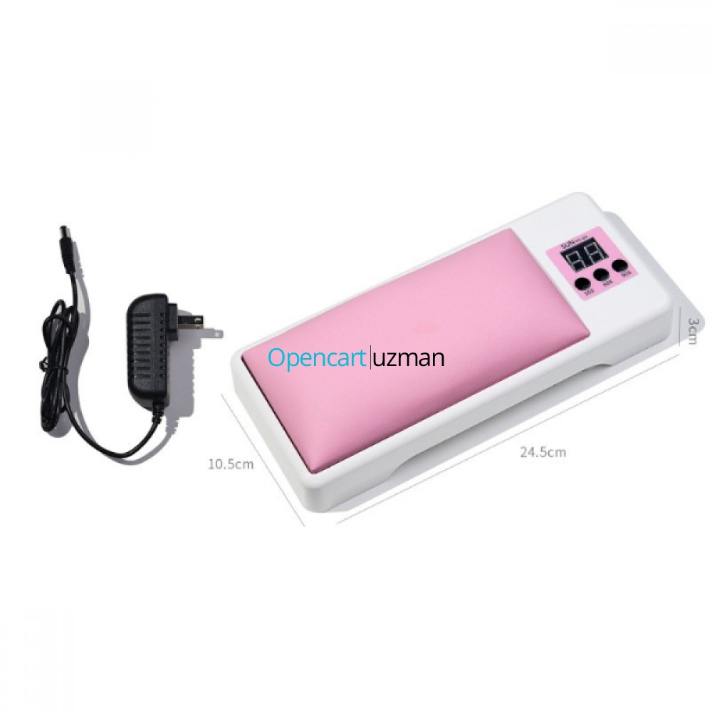 EL YASTIKLI UV OJE KURUTUCUÜrün ÖzellikleriYumuşak el yastıklı yapısı sayesinde konforlu kullanım sunan bu UV oje kurutucu, 24.5 cm uzunluk, 10.5 cm genişlik ve 3 cm yüksekliğe sahiptir. Dijital ekranı ile zaman kontrolü yapılabilen cihazda üç adet kontrol tuşu yer almaktadır. 30-60-90 saniye olarak zaman ayarlaması yapılabilir. Kurutucu yüzey kısmı, elde rahatlık sağlayan pembe deri kaplı sünger ile desteklenmiştir. Elektrik adaptörü ile çalışan bu cihaz, tırnak bakım işlemlerinde hem profesyonel hem de ev kullanımına uygundur. Jel oje kurutma işlemini hızlandırır ve uygulamalarda kolaylık sağlar. Ergonomik formu sayesinde uzun süreli işlemlerde dahi bilek desteği sunar.Paket İçeriği1 Adet El Yastıklı UV Oje Kurutucu