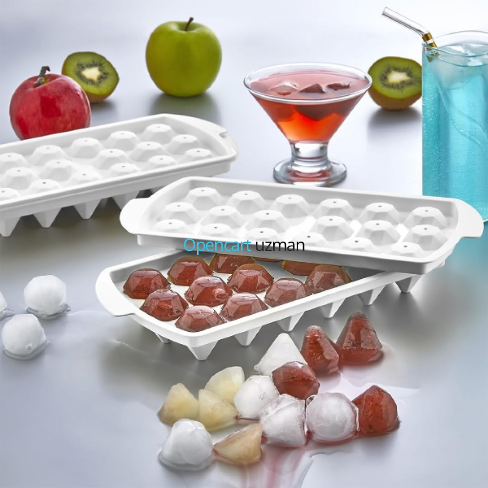 Elmas şeklindeki tasarımıyla fark yaratan 18 bölmeli buz kalıbı, içeceklerinize estetik bir dokunuş katmak için ideal bir üründür. Kaliteli plastik malzemeden üretilmiştir ve gıdaya uygundur. Her biri elmas formunda olan buz kalıpları, sıradan buzlardan çok daha şık bir sunum sağlar. Buz kalıbı kapağı sayesinde taşma ve koku karışımı riski en aza indirilir, dondurucuda düzgün bir şekilde yerleştirilerek hijyenik bir kullanım sunar. Meyve suları, sütlü karışımlar veya aromalı içeceklerle doldurularak farklı ve lezzetli buzlar elde edilebilir. Kullanımı pratik ve kolaydır, kalıptan buzları çıkarmak zahmetsizdir.