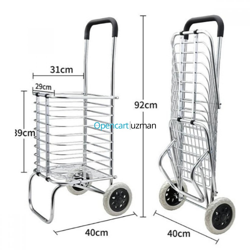 KATLANABİLİR TAŞINABİLİR ALIŞVERİŞ VE TAŞIMA ARABASIÜrün ÖzellikleriBu taşıma arabası, dayanıklı alüminyum çerçeveye sahiptir ve maksimum 20-30 kg yük taşıma kapasitesi sunar. Açık hali 92 cm yüksekliğe ve 40 cm genişliğe sahip olan ürün, kapalı halde kompakt bir şekilde muhafaza edilebilir. Sepeti 39 cm derinliğinde, 31 cm genişliğinde ve 29 cm boyutundadır.Bu taşıma arabası, market, pazar veya AVM alışverişlerinde kolaylık sağlar. Ayrıca ağır yüklerin taşınması, depo ve ofislerde küçük boyutlu kutu ya da eşyaların taşınması için uygundur. Seyahatlerde bagaj taşıma için de ideal bir çözümdür.Tekerlekleri, geniş ve dayanıklı lastik yapıya sahiptir, bu da zorlu yüzeylerde kolay hareket imkanı sunar. Ergonomik ve yumuşak tutma sapı, uzun süreli kullanımda bile rahatlık sağlar.Paket İçeriği1 adet Katlanabilir Taşınabilir Alışveriş ve Taşıma Arabası
