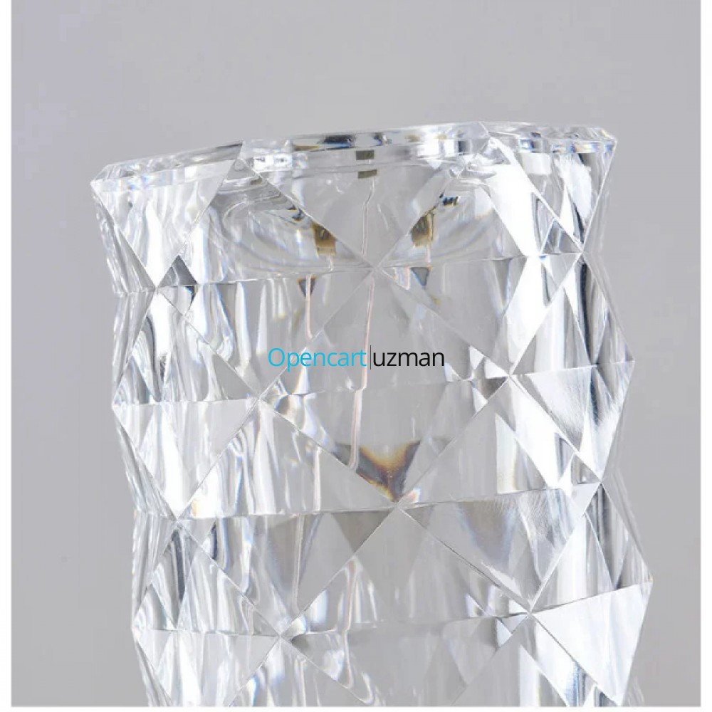 Kristal LED kumandalı ve dokunmatik masa lambası, zarif tasarımı ve çok işlevli özellikleriyle dekoratif aydınlatma arayanlar için ideal bir seçenektir. 21,5 cm yüksekliğe ve 9 cm çapına sahip olan bu lamba, kristal desenli yüzeyiyle ışığı estetik bir şekilde yansıtarak ortama şık bir ambiyans katar. Uzaktan kumanda ve dokunmatik kontrol özellikleri sayesinde kullanım kolaylığı sunar. 16 farklı statik renk seçeneği, flaş modu, solma modu ve yumuşak mod gibi aydınlatma modlarına sahiptir. Parlaklık seviyesi ayarlanabilir ve USB şarjlı yapısıyla kablosuz kullanım imkânı sağlar. Modern tasarımıyla yatak odası, oturma odası ve çalışma alanlarında hem fonksiyonel hem dekoratif bir ürün olarak kullanılabilir.